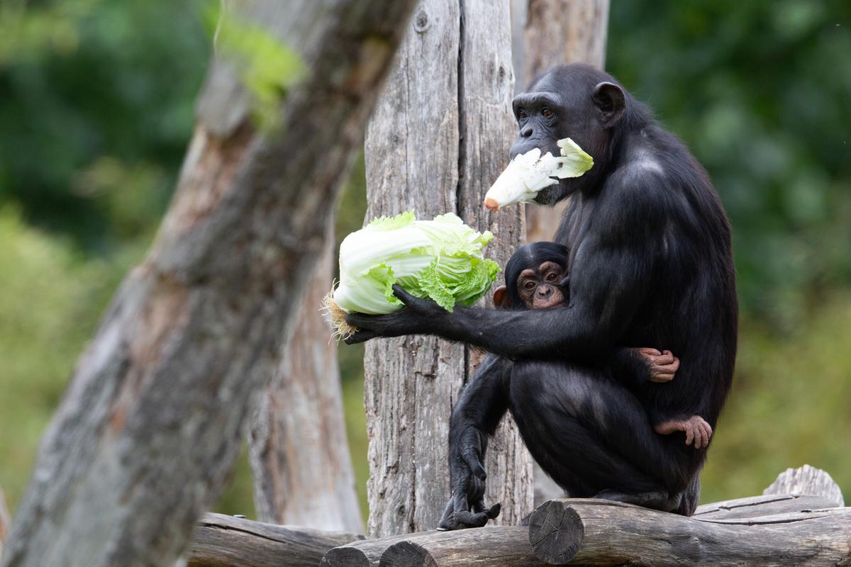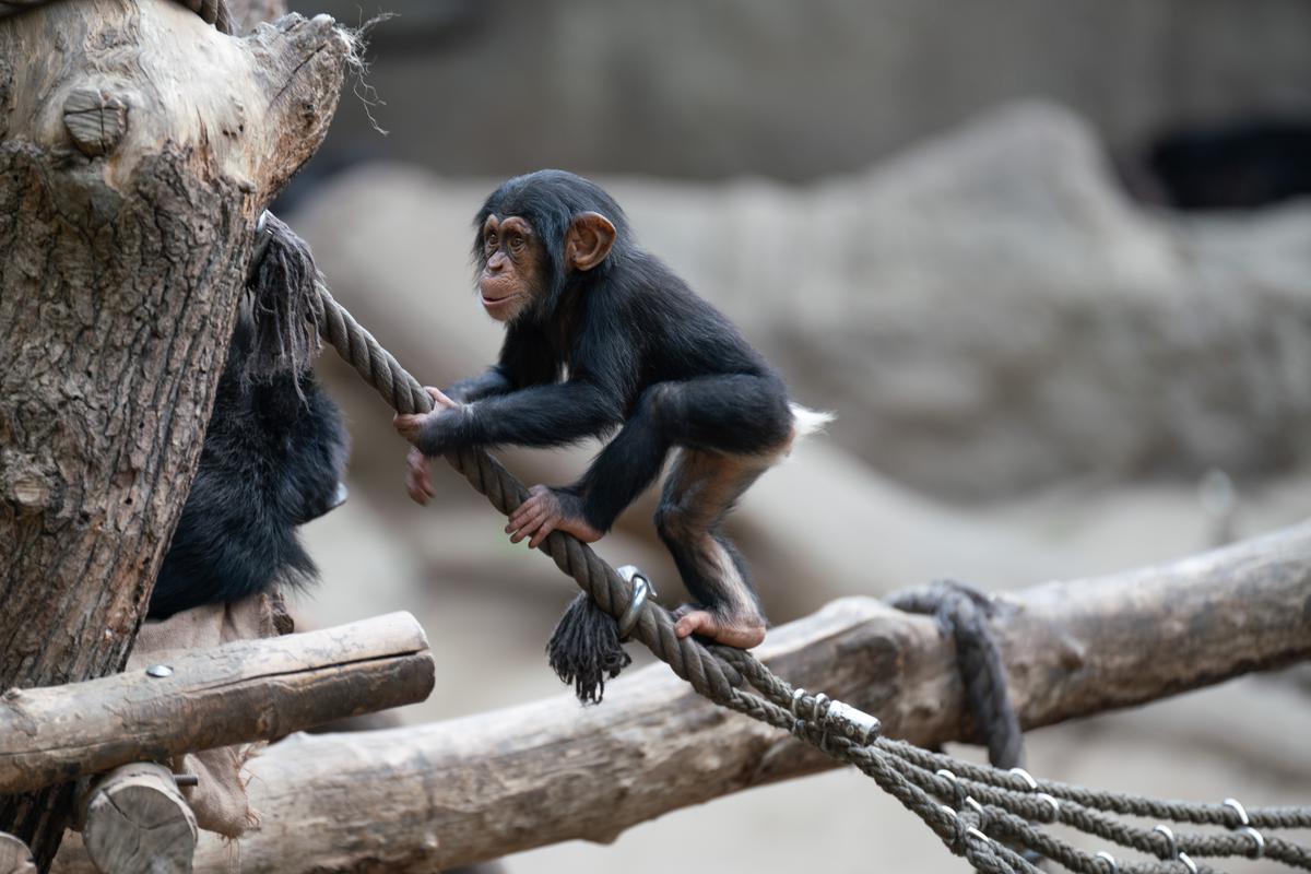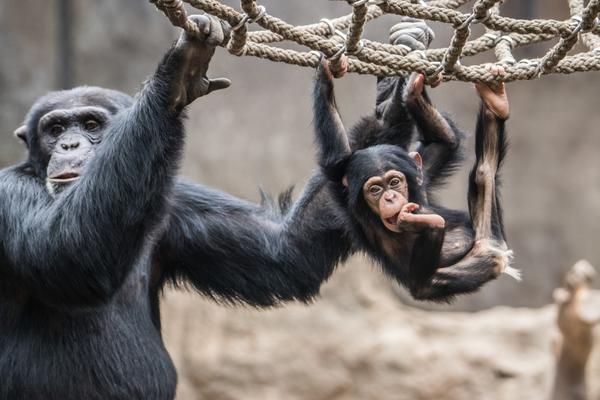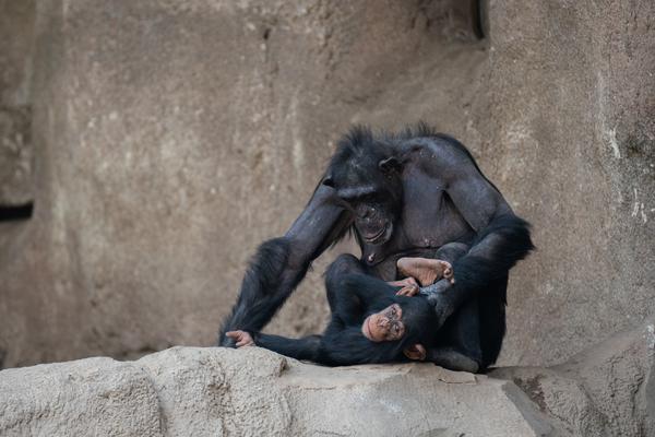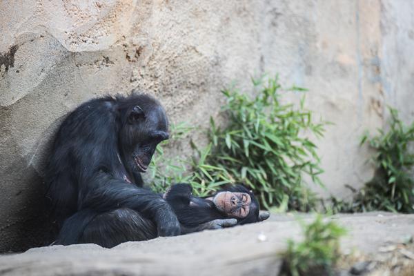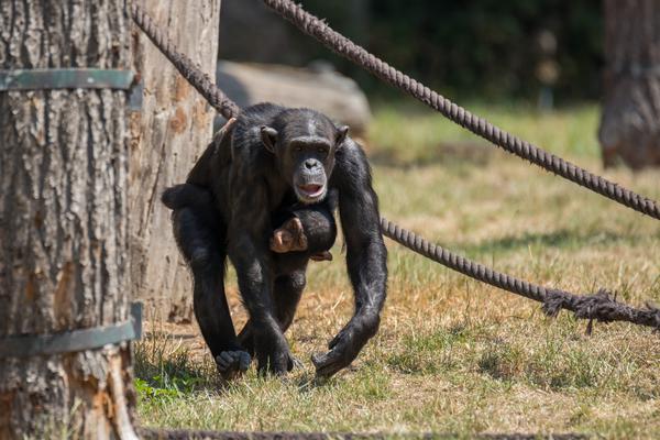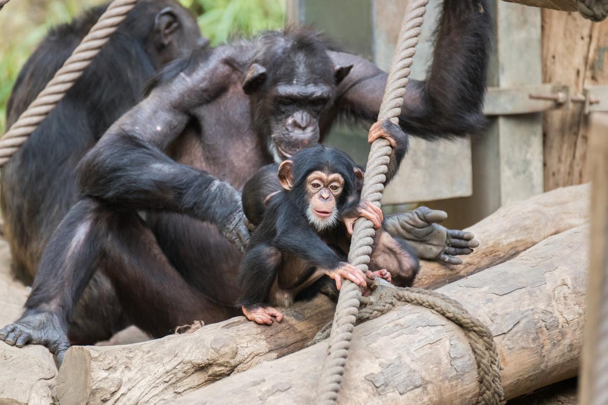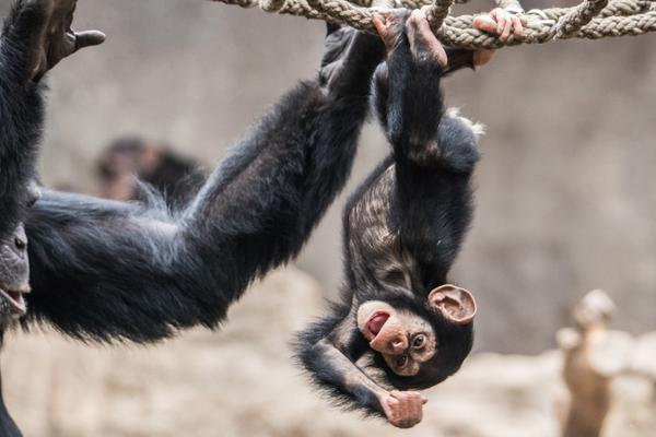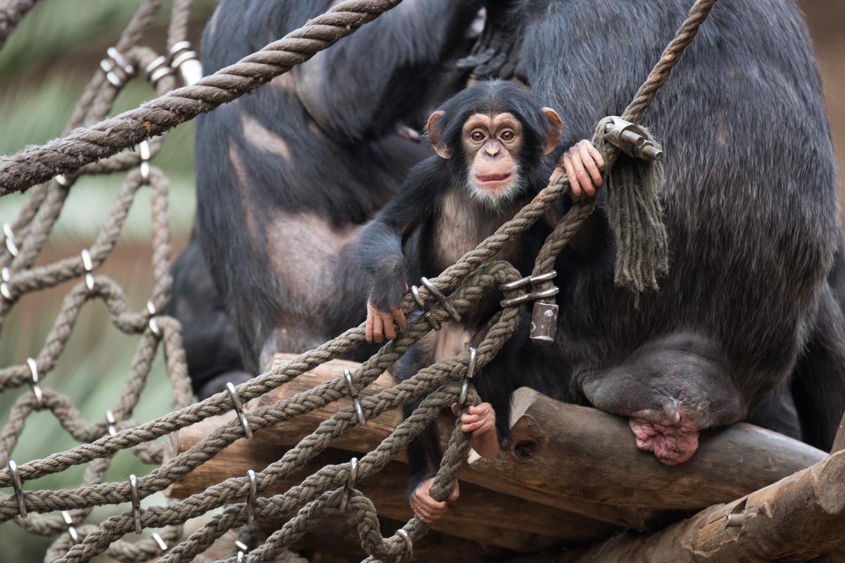 Im März 2018 hat es kurz hintereinander gleich zwei Mal Nachwuchs in der Gruppe gegeben: einen Jungen und ein Mädchen. Wohl zum Schutz der Kleinen ist es danach erst einmal ein ganzes Stückchen ruhiger bei den Schimpansen geworden - sehr vorbildlich.
