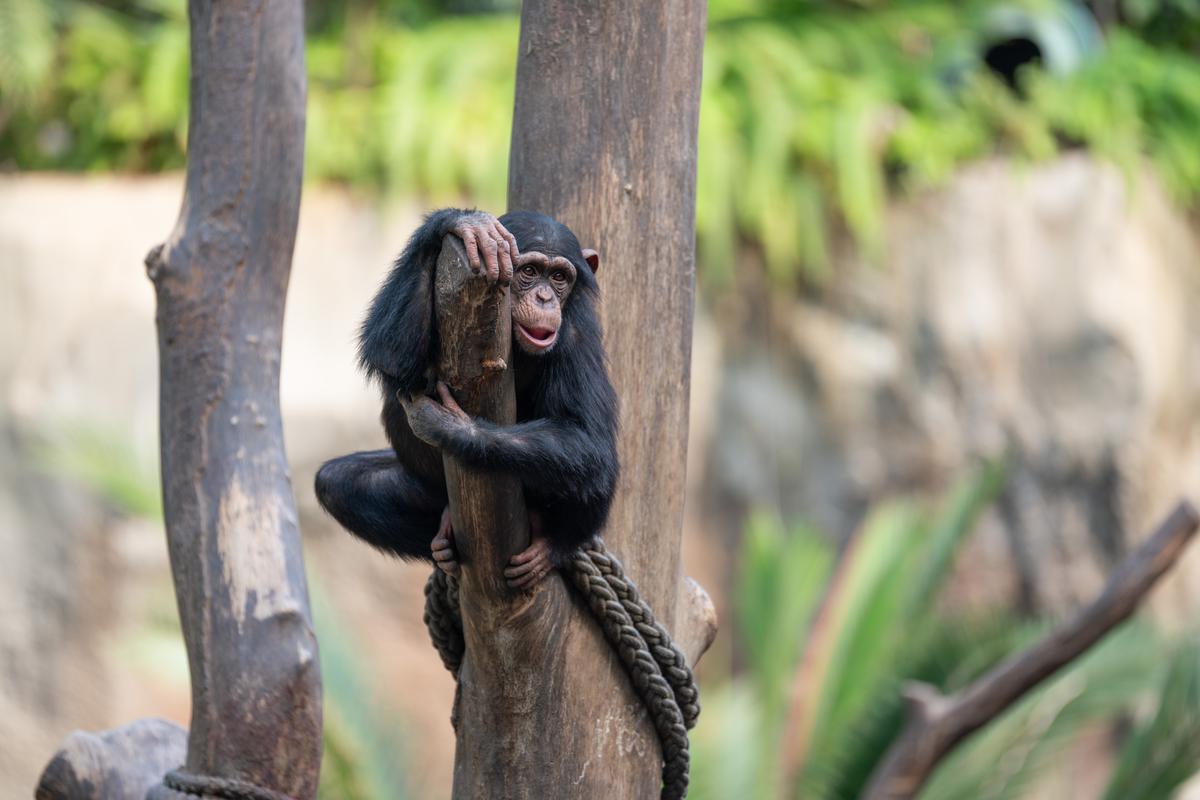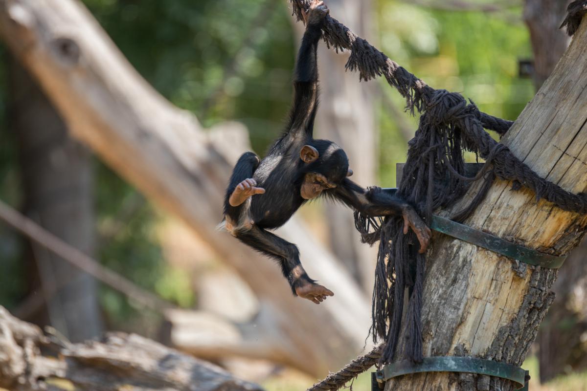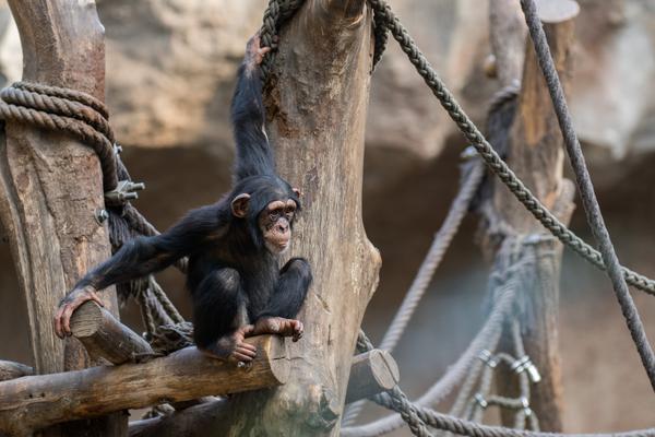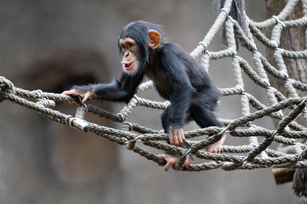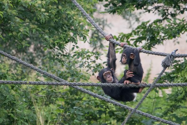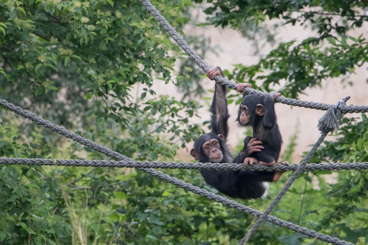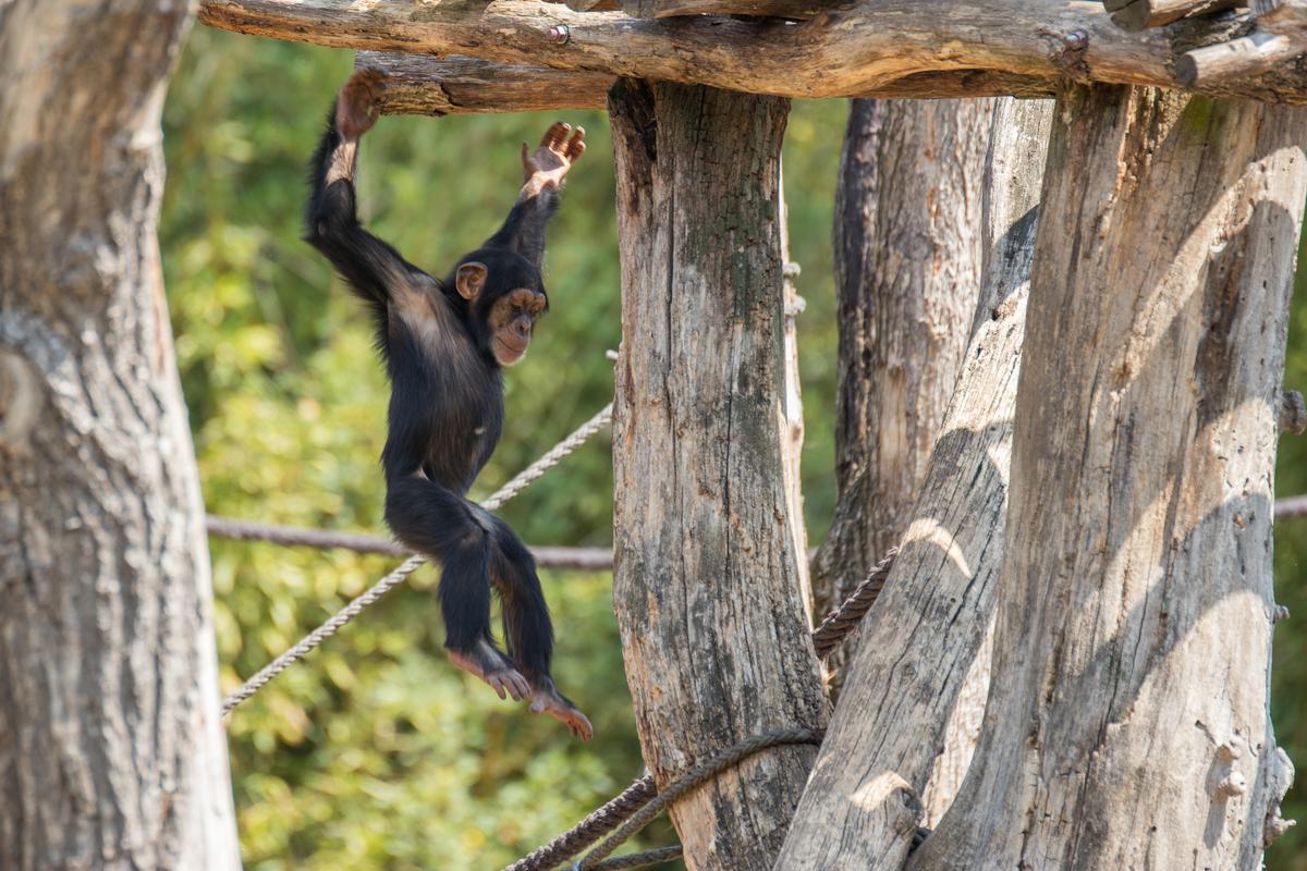 Wie auch an anderer Stelle erwähnt, interessiere ich mich sehr für die Schimpansengruppen des Leipziger Zoos. Bei der großen Gruppe, in der auch Azibo und Ohini leben, ist eigentlich immer etwas los. Scheinbar aus dem Nichts scheint die Lage plötzlich zu eskalieren. Die Schimpansen schreien sich lautstark an, jagen sich gegenseitig hinterher und springen mehrere Meter durch die Luft. Von einem Moment auf den Anderen haben sich dann wieder alle beruhigt. Jetzt gehört die Bühne wieder dem etwa zweijährigen Azibo und dem kleineren Ohini. Sie spielen miteinander und führen waghalsige Turnmanöver vor. Da muss dann auch schon mal die Mama eingreifen und die Kleinen ein bisschen zurückhalten. Als ob die beiden darauf lange hören würden...