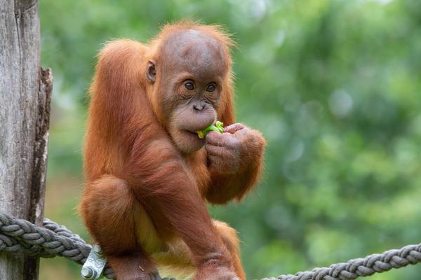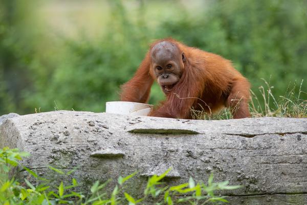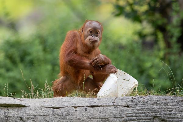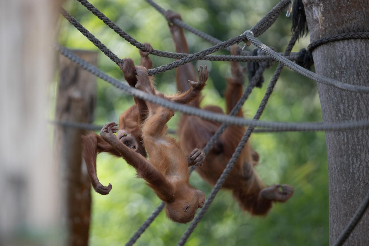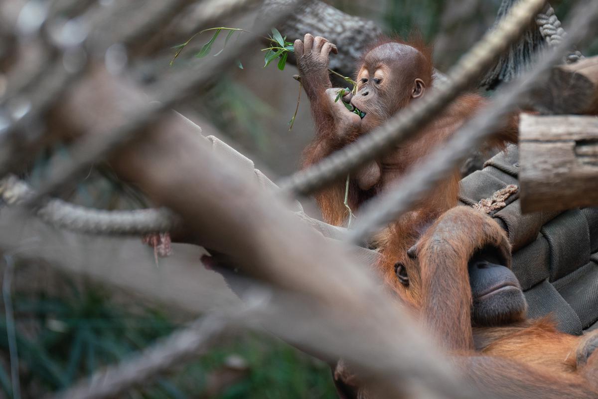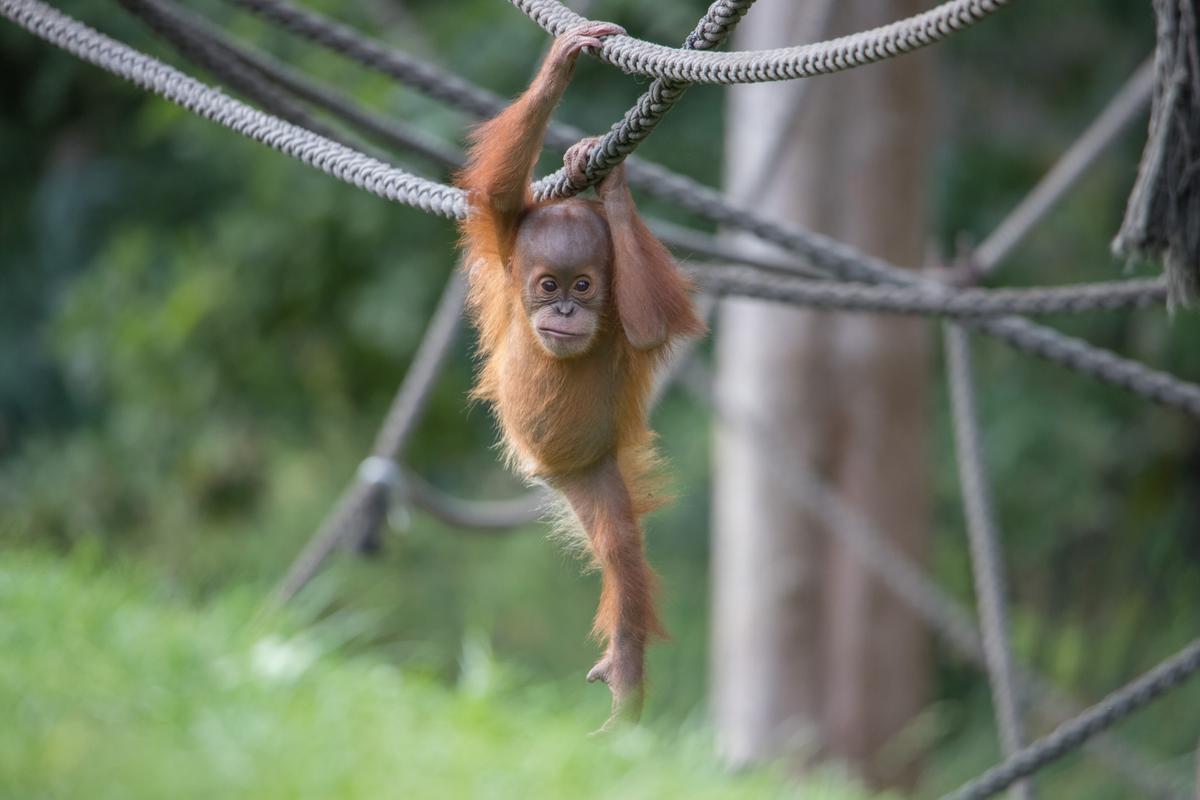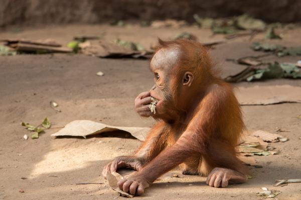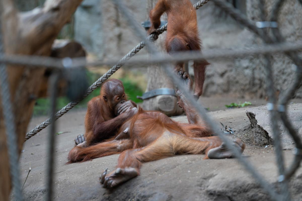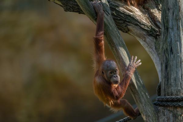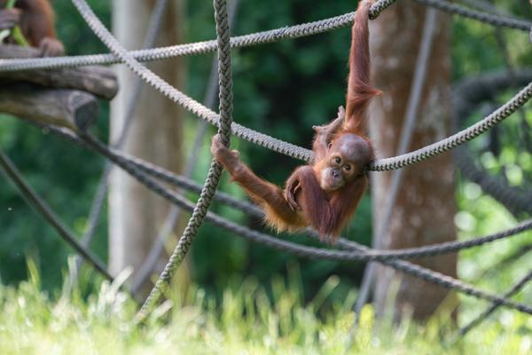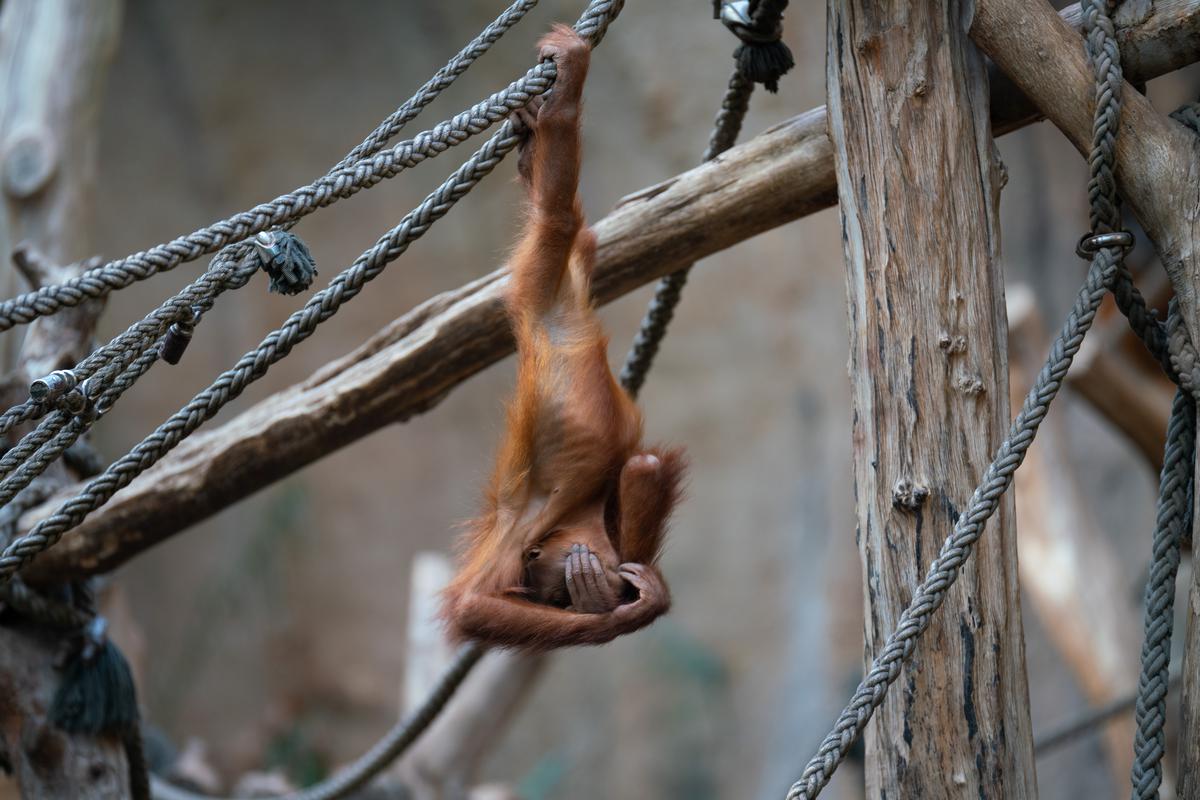 Bei den Orang-Utans gibt es aktuell zwei Jungtiere, Marok (März 2017) und Sari (August 2017). Ich kann mir nicht helfen, mich erinnern die Kleinen mit ihren Falten und ihrer kargen Frisur einfach an alte Menschen. Trotzdem sind die beiden unglaublich süß und nach einer anfänglich etwas angespannten Lage geht spätestens seit dem zweiten Jungtier auch alles wieder friedlich seinen Gang. Inzwischen unternehmen die kleinen Orangs auch schon eigenständige Kletterversuche. Häufig konnte ich zudem beobachten, wie sich eine der Mütter gleich um beide kleinen Racker kümmert.