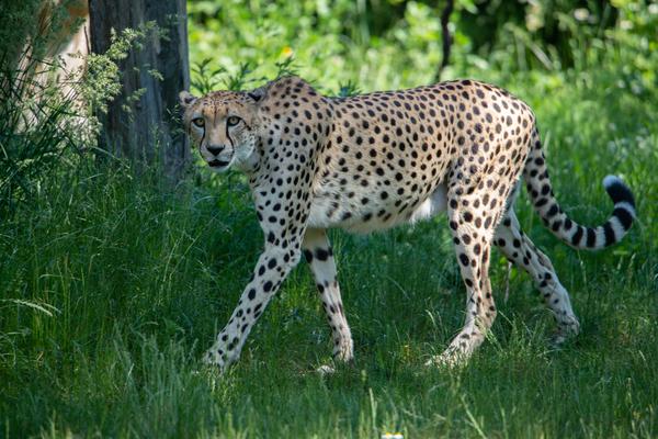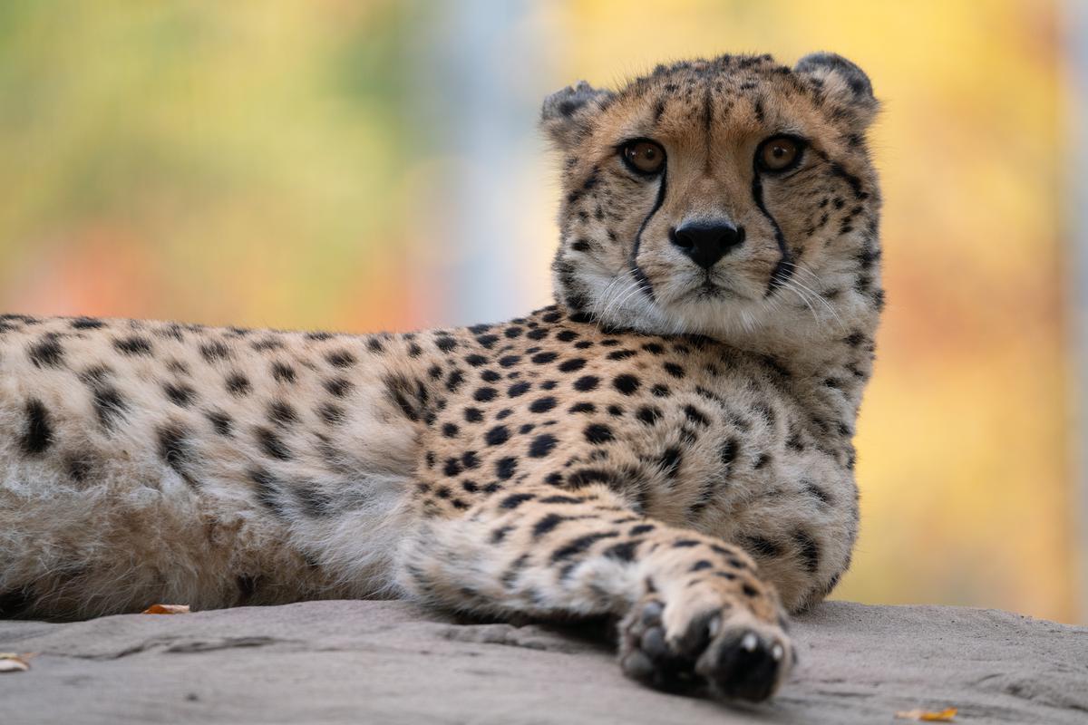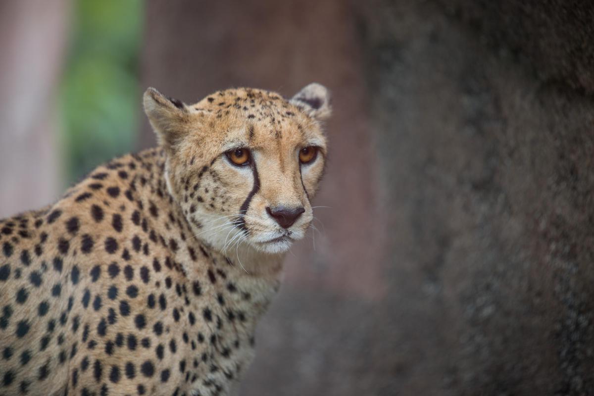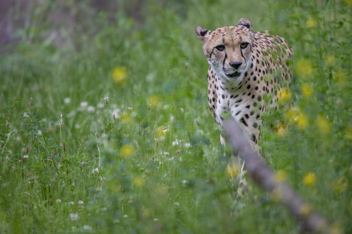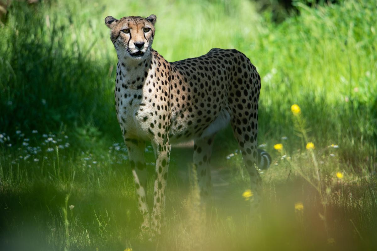 Wenn sie an ihrem angestammten Platz hinter der Scheibe liegen, fixieren sie den Besucher oft mit eindringlichem Blick. Die Tiere sitzen natürlich nicht die ganze Zeit herum und beobachten die Besucher. Gerade in den frühen Stunden sind die beiden sehr aktiv und streifen über die Anlage. Dabei wird der eindrucksvolle, wenn auch etwas eigenartige Körperbau eines Tieres deutlich, welcher perfekt für die schnelle Bewegung optimiert ist.