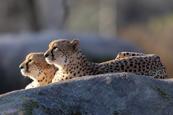 Nach langer Abwesenheit sind 2015 die Geparden in den Leipziger Zoo zurückgekehrt. Die dafür neu geschaffene Anlage, die Kiwara-Kopje, ist Teil der letzten Afrika-Erweiterung des Zoos. Hier sollten eigentlich die beiden Südafrikanischen Geparden eine Wohngemeinschaft mit dem Spitzmaulnashorn- Bullen und einer Gruppe Husarenaffen bilden. Leider haben sich Geparden und Affen nicht an die Vorstellungen über ein friedliches Zusammenleben gehalten. Letztere haben dann doch eher ein panisches Verhalten gezeigt und sind jetzt in einem separat abgetrennten Bereich am Rand der Anlage untergebracht. Das Nashorn ist zwar technisch gesehen auch auf der Anlage, hat aber anscheinend nur zwei Quadratmeter zur Untermiete abbekommen. Zumindest steht der Bulle immer an exakt der gleichen Stelle direkt an der Tür zum Innenbereich. Das mit der schön gestalteten, weitläufigen Außenanlage ist halt einfach nicht sein Fall.